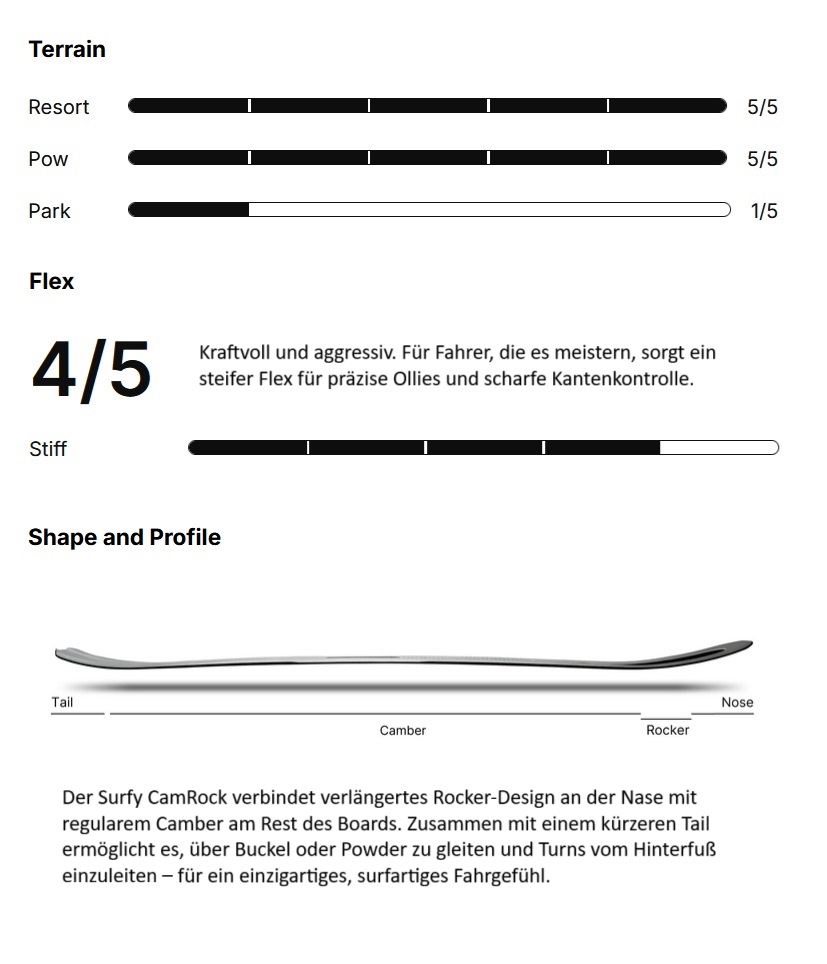 Unser fortschrittlichster Herstellungsprozess kombiniert Elemente der Cap- und Sandwich-Konstruktion, während das Gewicht in der Boardmitte reduziert wird. Das Ergebnis ist ein kraftvoller Flex von Tip bis Tail, der dennoch präzises torsionales Gefühl und Kantenkontrolle ermöglicht.